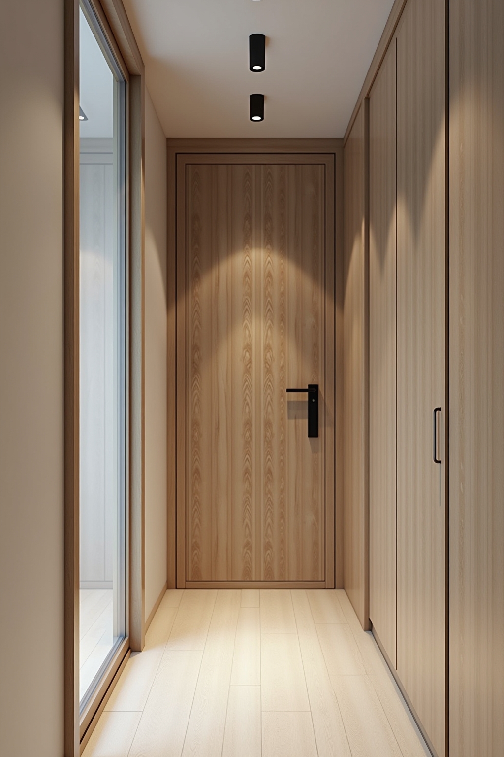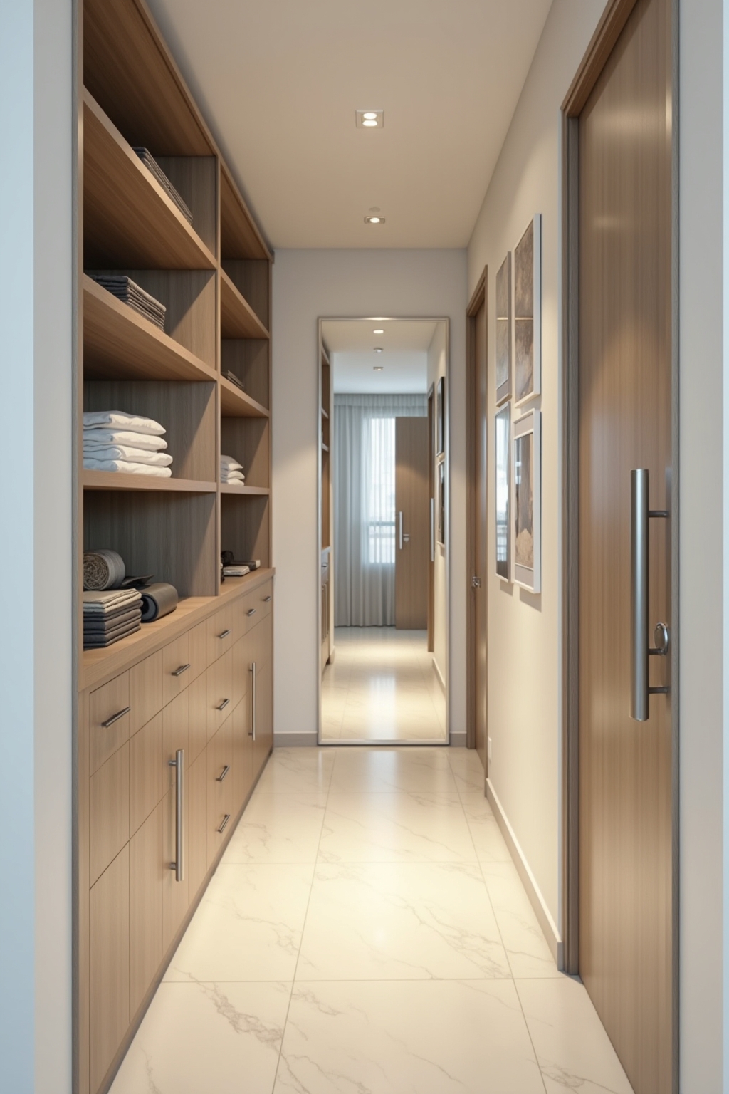 Die richtige Beleuchtung und Wandgestaltung können selbst schmale Flure optisch vergrößern.
