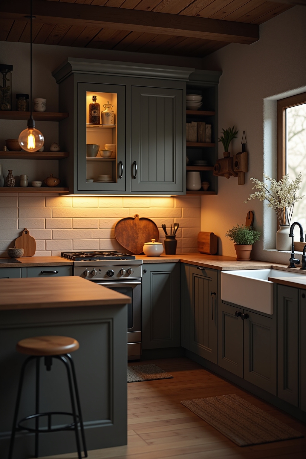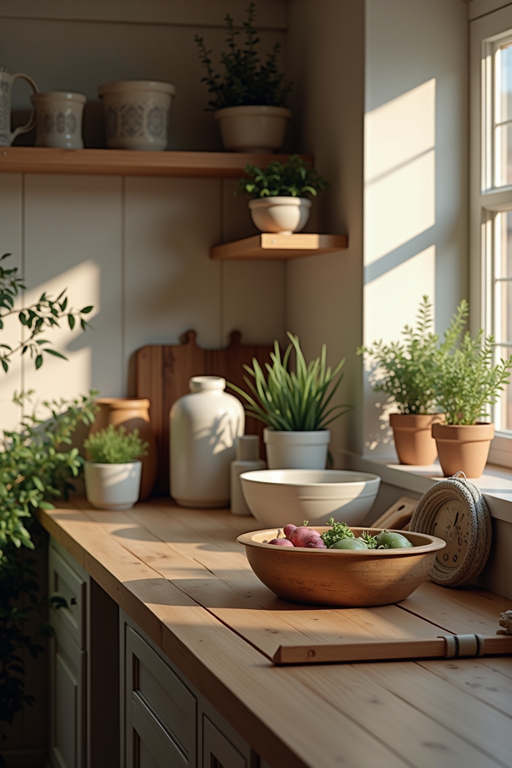 - Funktionale Dekoelemente wie Holzschneidebretter oder Keramikgefäße für authentischen Charme