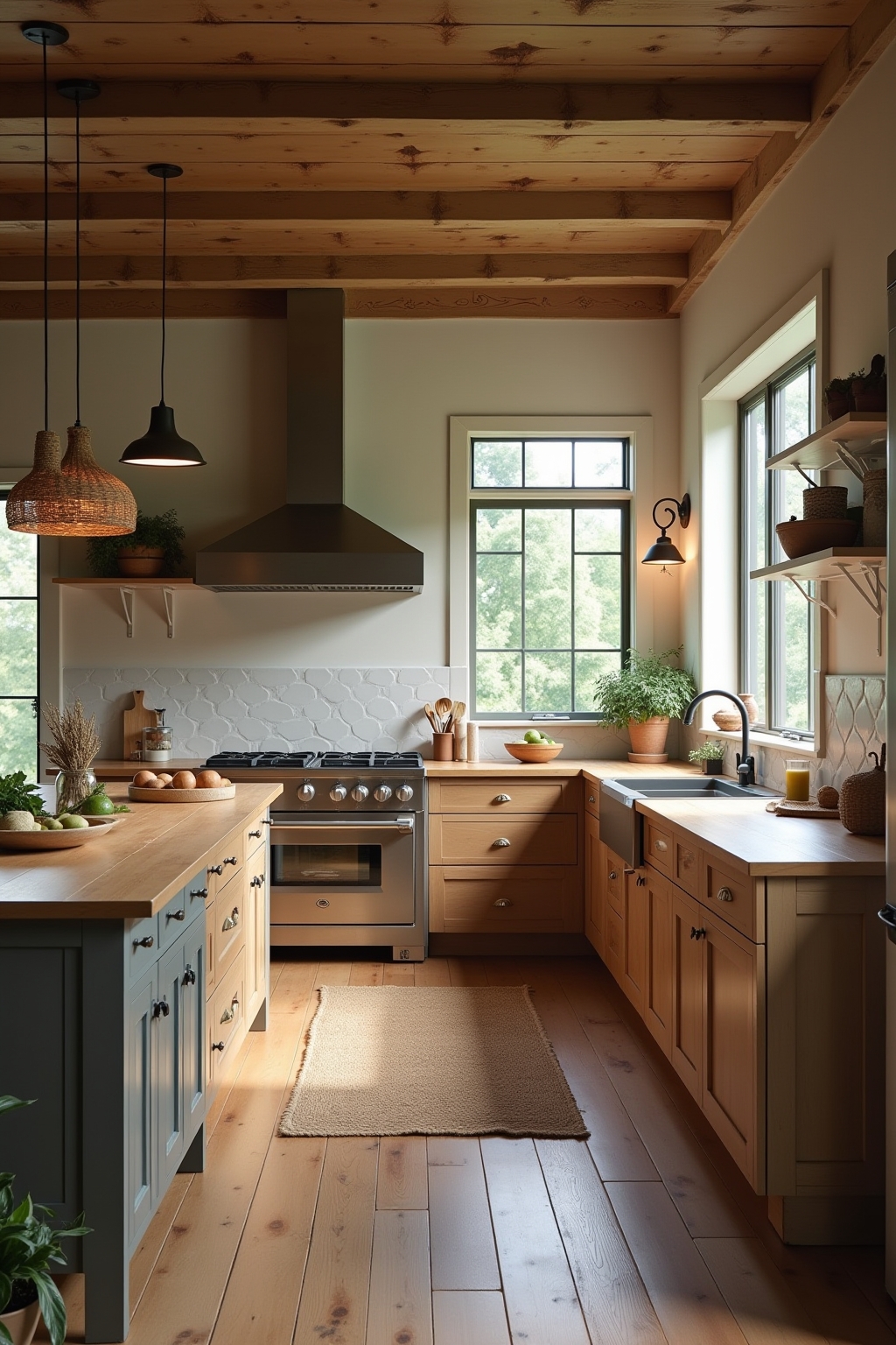 Der moderne Landhausstil kombiniert rustikale Elemente wie Holz und Naturmaterialien mit klaren Linien und aktueller Küchentechnik.