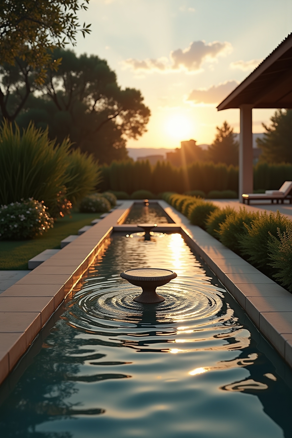 Ein Wasserbecken auf der Terrasse verwandelt Ihren Außenbereich in eine persönliche Wohlfühloase, in der Sie nach einem stressigen Arbeitstag wunderbar entspannen können. Das sanfte Plätschern des Wassers schafft eine beruhigende Atmosphäre, während die glitzernde Oberfläche optisch für ein harmonisches Element sorgt, das sich perfekt in die Gestaltung kleiner Räume im Außenbereich einfügt. Je nach Größe und Design können Sie Ihr Wasserbecken mit Wasserpflanzen, kleinen Fischen oder dekorativen Elementen ausstatten, um eine individuelle und natürliche Umgebung zu schaffen. Die Installation eines Wasserbeckens auf der Terrasse ist nicht nur ein ästhetisches Highlight, sondern trägt auch zu einem angenehmen Mikroklima bei, da die Wasseroberfläche an heißen Sommertagen für eine willkommene Abkühlung sorgt.