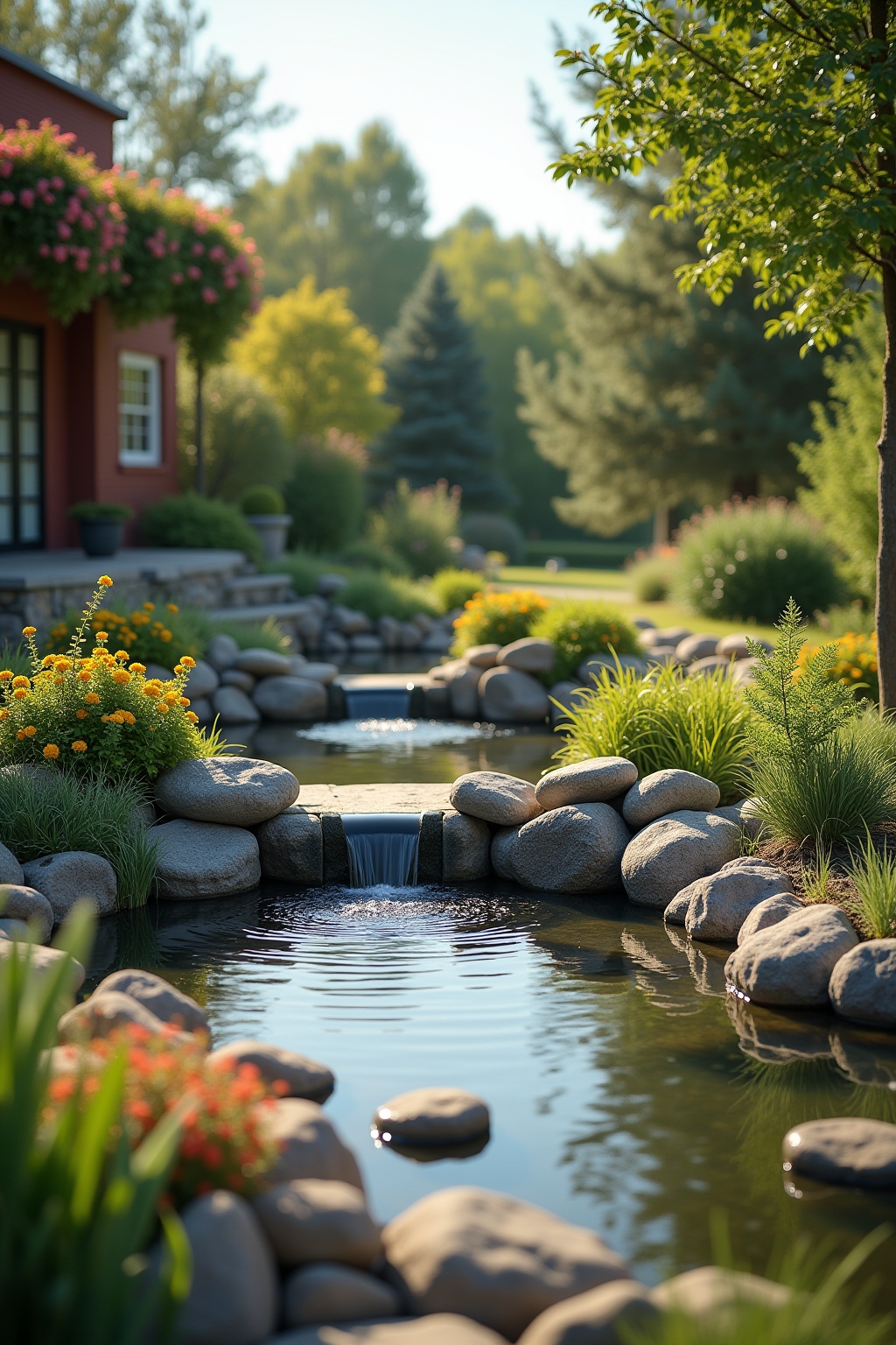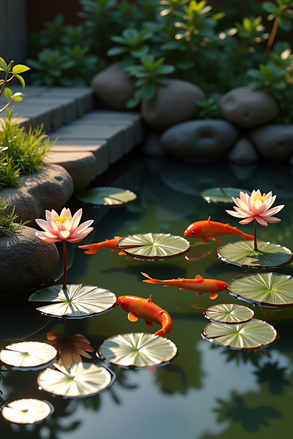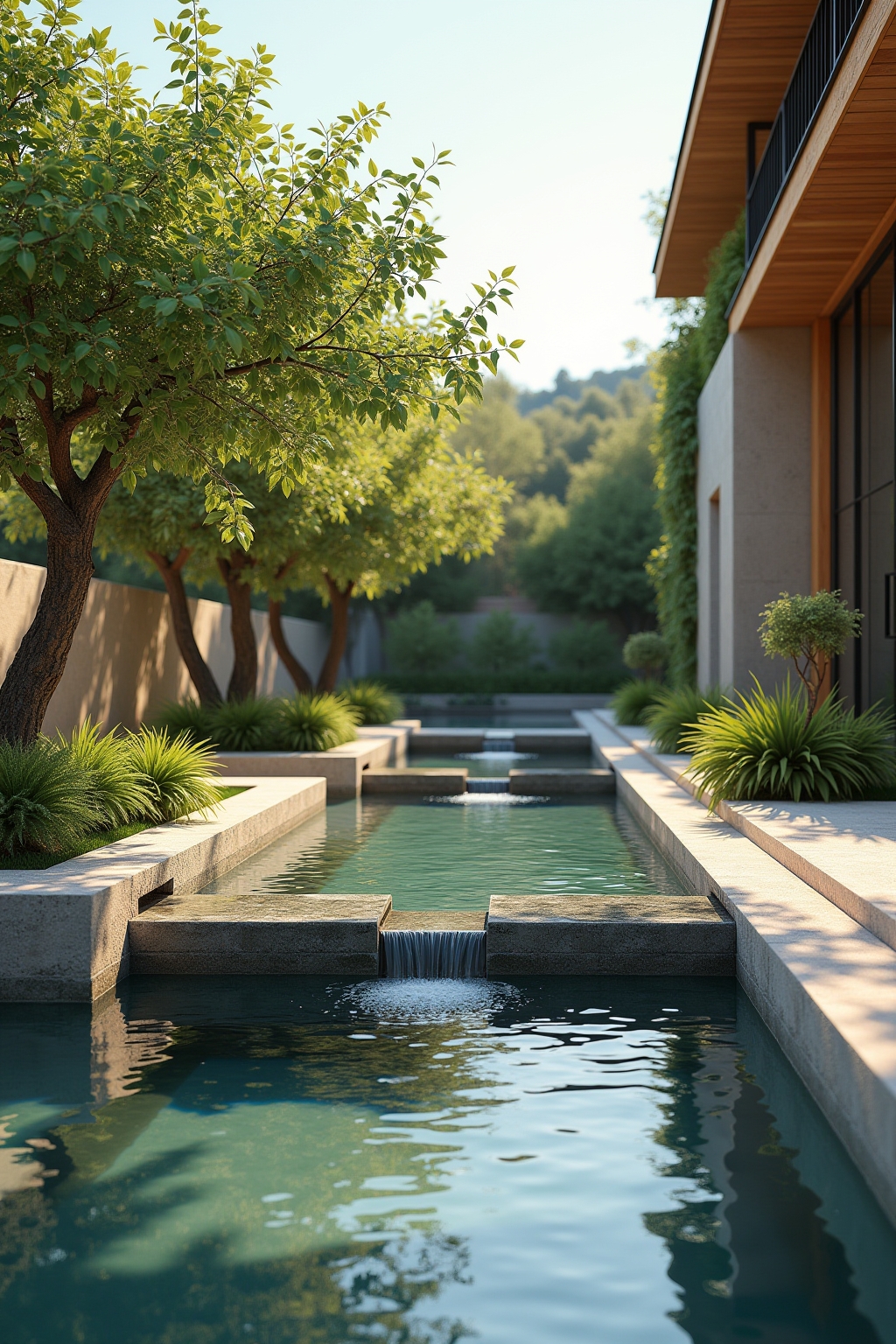 Pflanzen und Fische: Leben im Terrassen-Wasserbecken